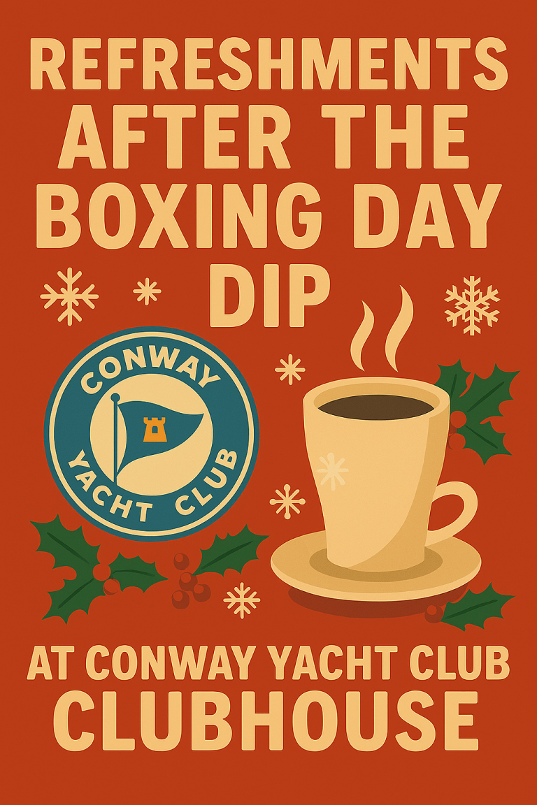 For anyone brave or bonkers enough to swim or dip into the Sea off Deganwy Beach on Boxing Day, Conway Yacht Club opens our doors to warm everyone up and provide some well deserved refreshments! CYC Clubhouse Committee